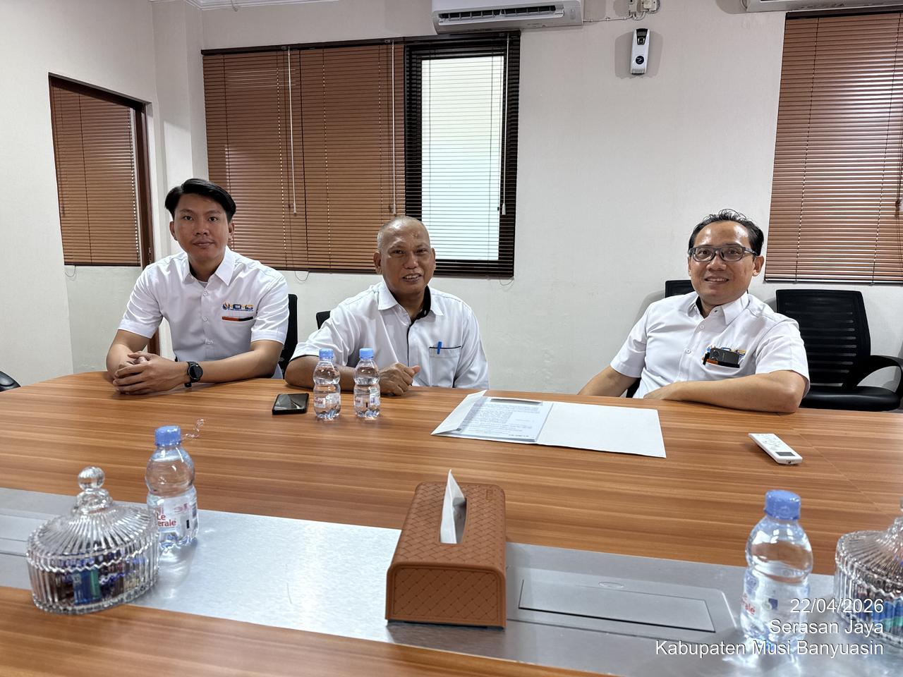 Direktur Keuangan PT. Muba Energi Maju Berjaya (Perseroda), Bapak FERY ANTONI KURNIAWAN dan Sekretaris Perseroda Bapak PRATAMA, melakukan Konsolidasi dengan Kepala Bidang Pengelolaan Aset Badan Pengelola Keuangan dan Aset Daerah Kabupaten Musi Banyuasin, Bapak A. KARTIKO.